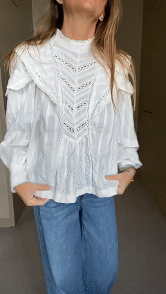 Blouse in plain-colored cotton voile and lace